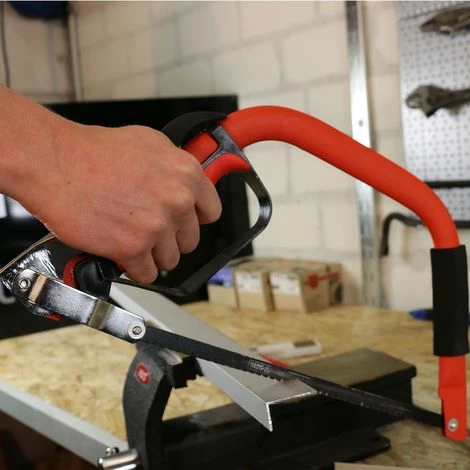 Hochwertige Bügelsäge mit einem ergonomischen Kunststoff Griff und einer Gesamtlänge von 400 mm zum Sägen von Holz, Metall und anderen Materialien. Die Sägeblätter haben eine Länge von 300 mm. Ideal für den schnellen Einsatz auf der Baustelle, Garten usw.