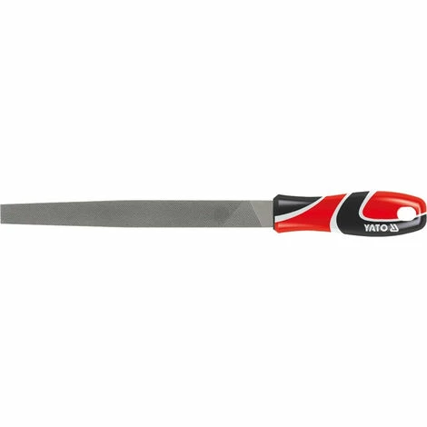 - Flache Feile, einmal geschnitten mit einem Dreikomponentengriff
