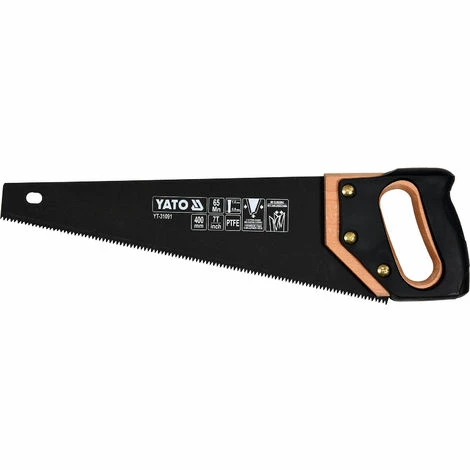 Hand-Säge mit einer Schneidlänge von 400 mm (470 mm mit Griff) zum Sägen von Holz und Holzwerkstoffen wie Sperrholz, Span oder MDF-Platten.