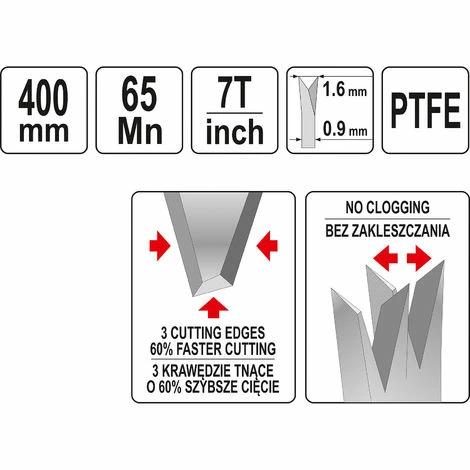 Die hohe Blattsteifigkeit und 7 tpi Zähne (7 Zähne pro 2,54 cm) ermöglichen ein effektives, schnelles und präzises Schneiden,