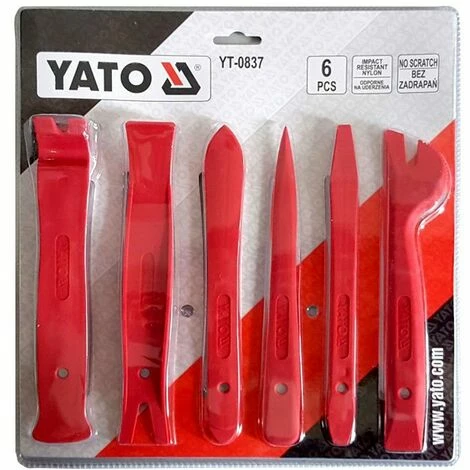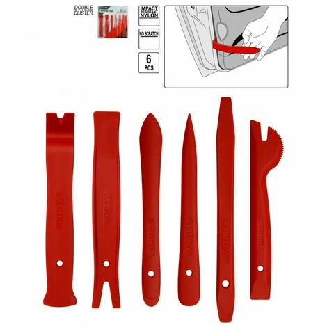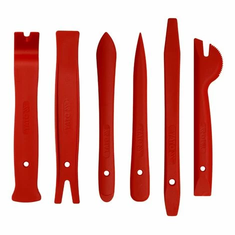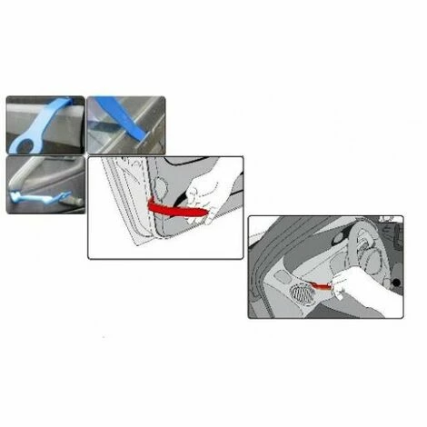 - Universelles Kunststoffhebel Sortiment zur beschädigungsfreien Demontage und Montage von diversen Verkleidungsteilen, Zierleisten, Clips und weitere Abdeckungen an Amaturenbrett und Innenausstattung.