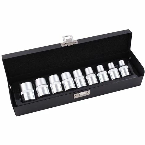 Professionelles Werkzeugset mit allen gängigen Torxnüssen von E10 bis E24. Die Aufsätze sind aus hochfestem, rostfreiem Chrom-Vanadium Stahl.