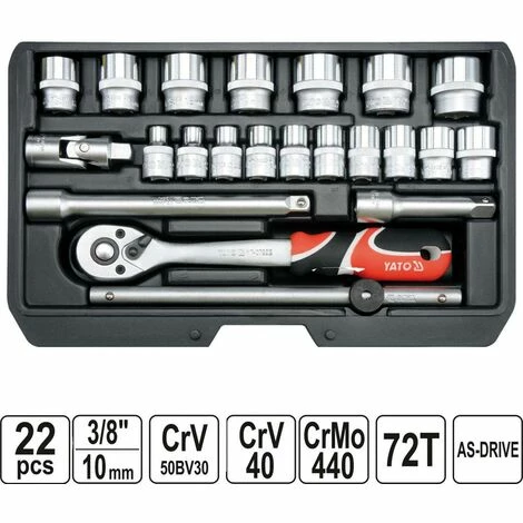 Lieferumfang: 1x YATO Steckschlüsselsatz 22 teilig