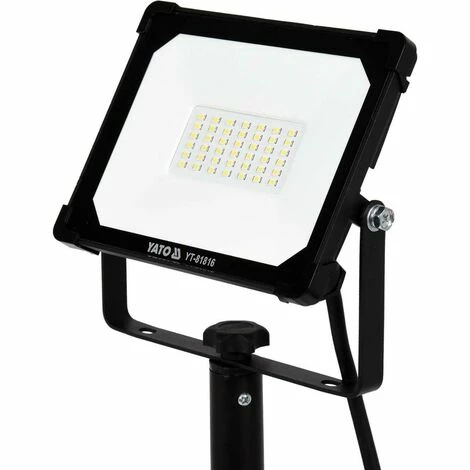 Der Yato Baustrahler mit einem Flachbildschirm und leistungsstarken SMD-LEDs auf einem stabilen, verstellbaren Ständer, sorgen für eine optimale Lichtleistung.