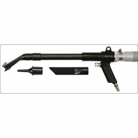 Das Werkzeug erleichtert die Arbeit in jedem Vulkanisierbetrieb, z.B. beim Absaugen von Gummiresten nach dem Aufrauen von Reifen und vor dem Auftragen vom Klebstoff. Der Anwendungsbereich hängt jedoch wirklich vom Bedarf ab. Selbst ein kleiner Kompressor reicht aus, um umfangreiche Arbeiten auszuführen. Ein Pistolengriff erleichtert die Bedienung der Düse sogar an schwer zugänglichen Stellen.