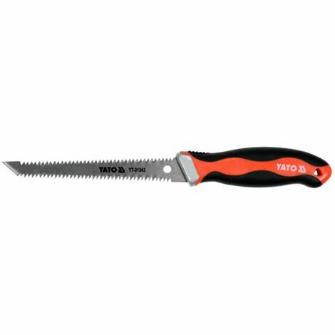 Die Stichsäge von YATO besitzt einen ergonomisch geformten Kunststoffgriff, eine geschärfte Spitze, sowie ein stärkeres Blatt zum leichten Durchstoßen von Gipskarton.