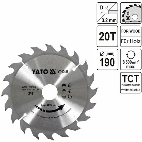 Lieferumfang: 1 x Kreissägeblatt 20 Zähne 190x30mm
