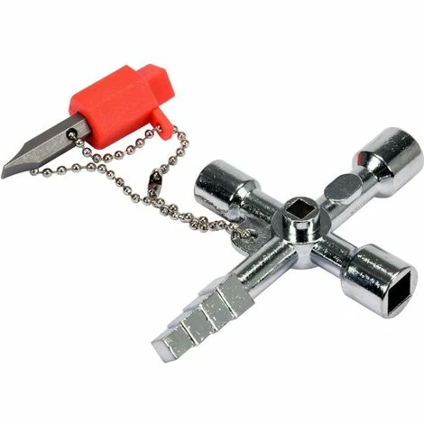 Vierarmiger Schlüssel, konzipiert für das Öffnen und Schließen von Schlössern in technischen Schränken, z.B. mit Gas-, Strom-, Wasser-, Klima-, Lüftungs- usw.