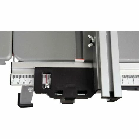 Zur weiteren serienmäßigen Ausstattung gehören die abnehmbare und pulverbeschichtete 250 mm breite Tischverbreiterung aus Stahl, ein Absaugstutzen, ein Hartmetallsägeblatt, ein Schiebestock, eine Anschlagschiene mit Milimeterskala, ein Not-Ausschalter sowie ein komplettes Untergestell.