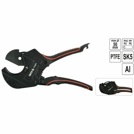 - Schere zum Schneiden von Rohren aus PVC und anderen Kunststoffen (PP, PE, PU) und Leerrohren.