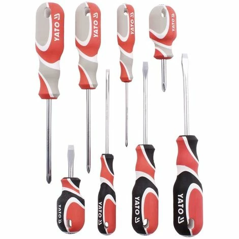 - Die Schraubendreher haben eine gummierte Oberfläche für einen festen und sicheren Halt, auch bei öligen Händen